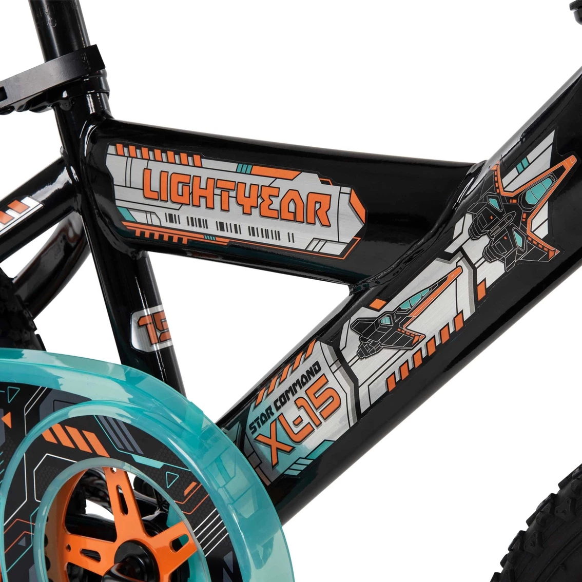 Frame: The black steel frame covered in Disney Lightyear graphics is sturdy and ready for every ride.