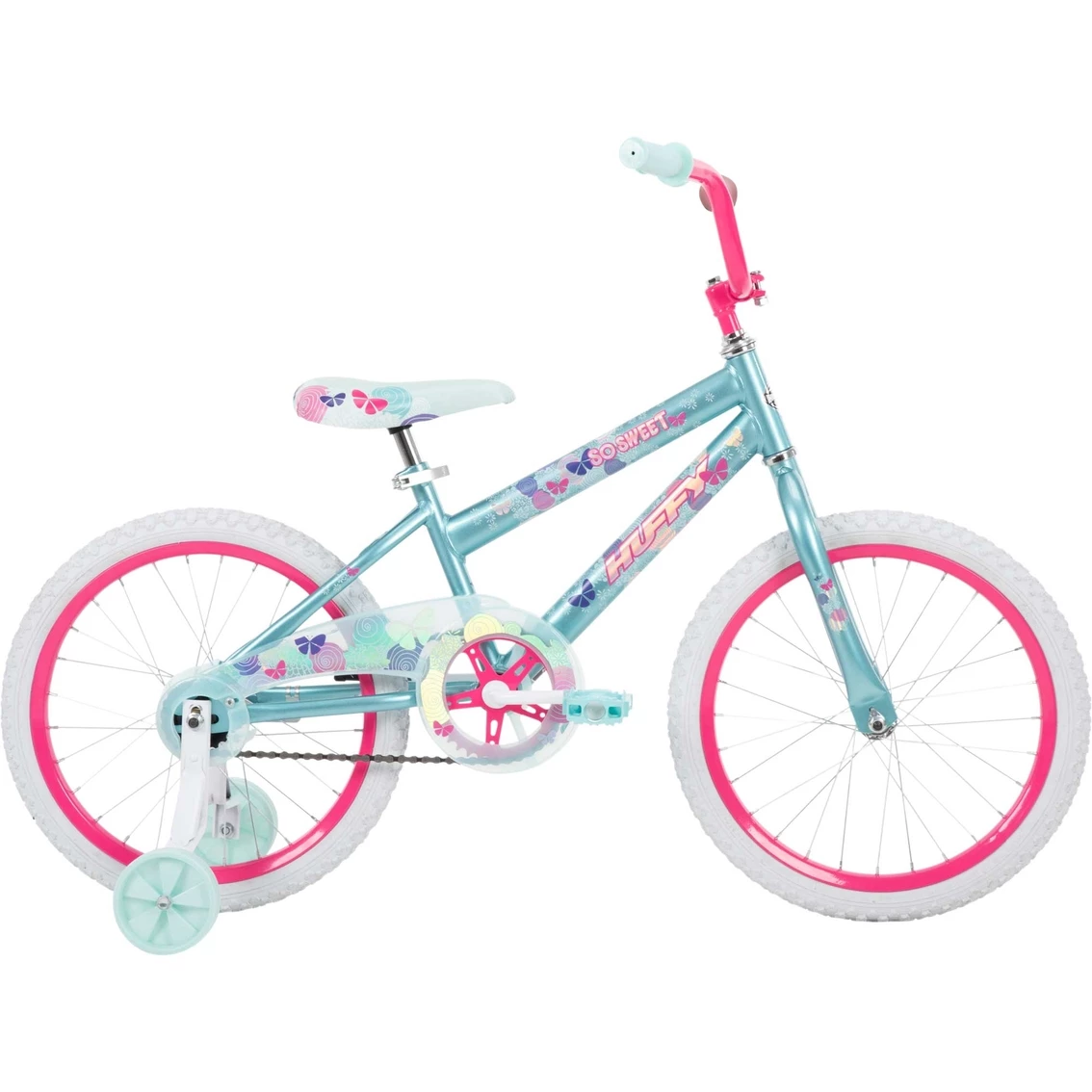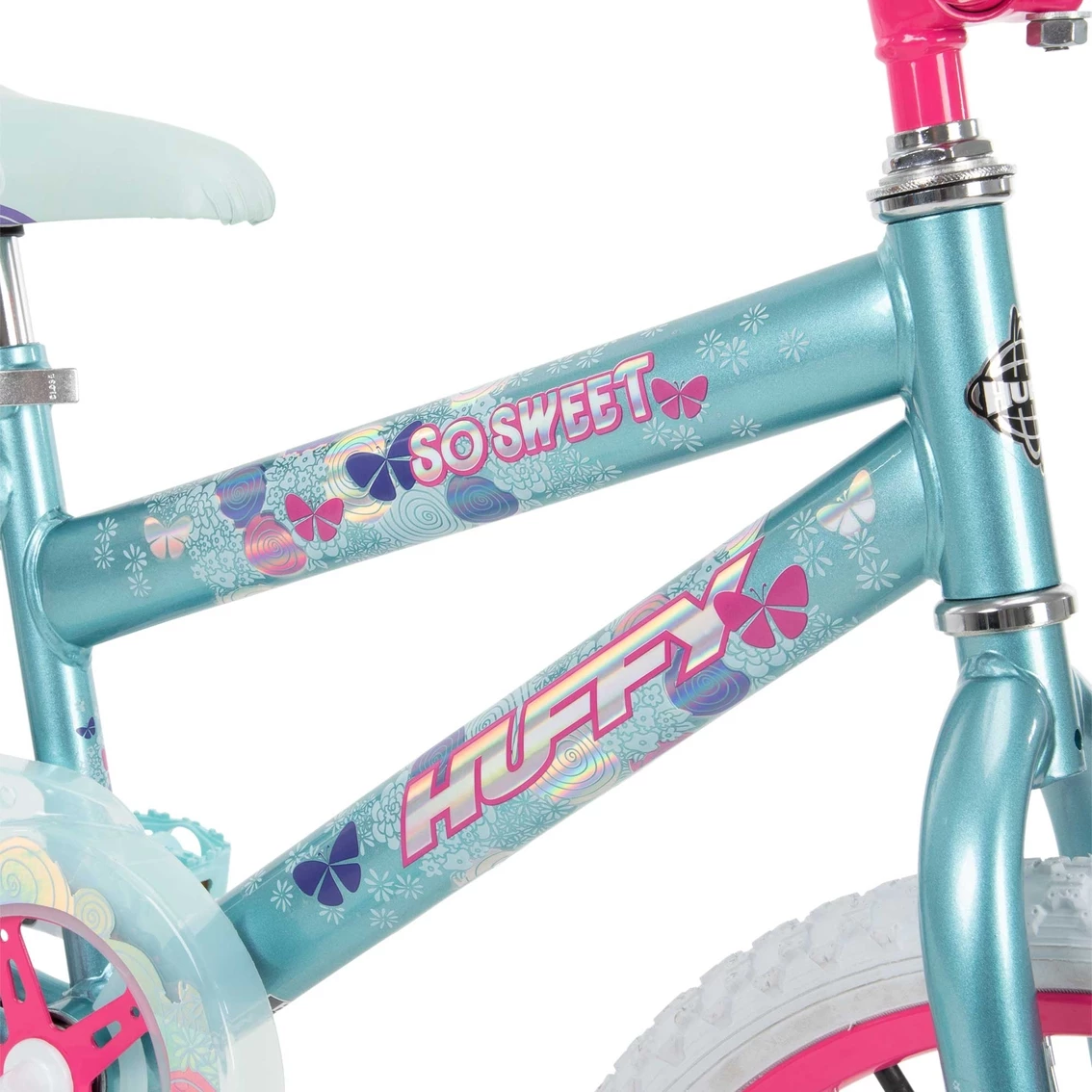 This shiny bike with adorable butterfly details by Huffy is your little riderβs dream! When your child hops on the So Sweet 18 in. bike by Huffy, theyβll be so excited for all the adventures to come! This light blue bike with pink and purple details is an awesome ride for your child who is getting more comfortable and confident behind the handlebars of a bike.