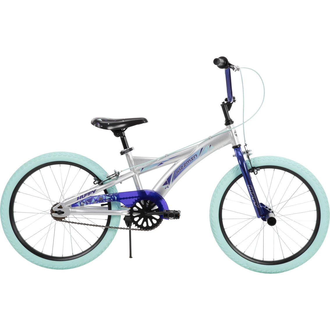 Letβs ride! The Huffy 20-inch Jazzmin BMX-style bike will catch everyoneβs eyes. Bold colors featuring the Huffy exclusive Metaloid Violet on the fork compliment the bikeβs cool spec. The durable steel Silver frame bike combines with front and rear handbrakes for convenient, solid control. Front pegs give the Jazzmin a pro-style look, and the BMX-style bike includes an alloy quick release to adjust the seat height for the right fit. Jazzmin, a fun ride with a hot look!