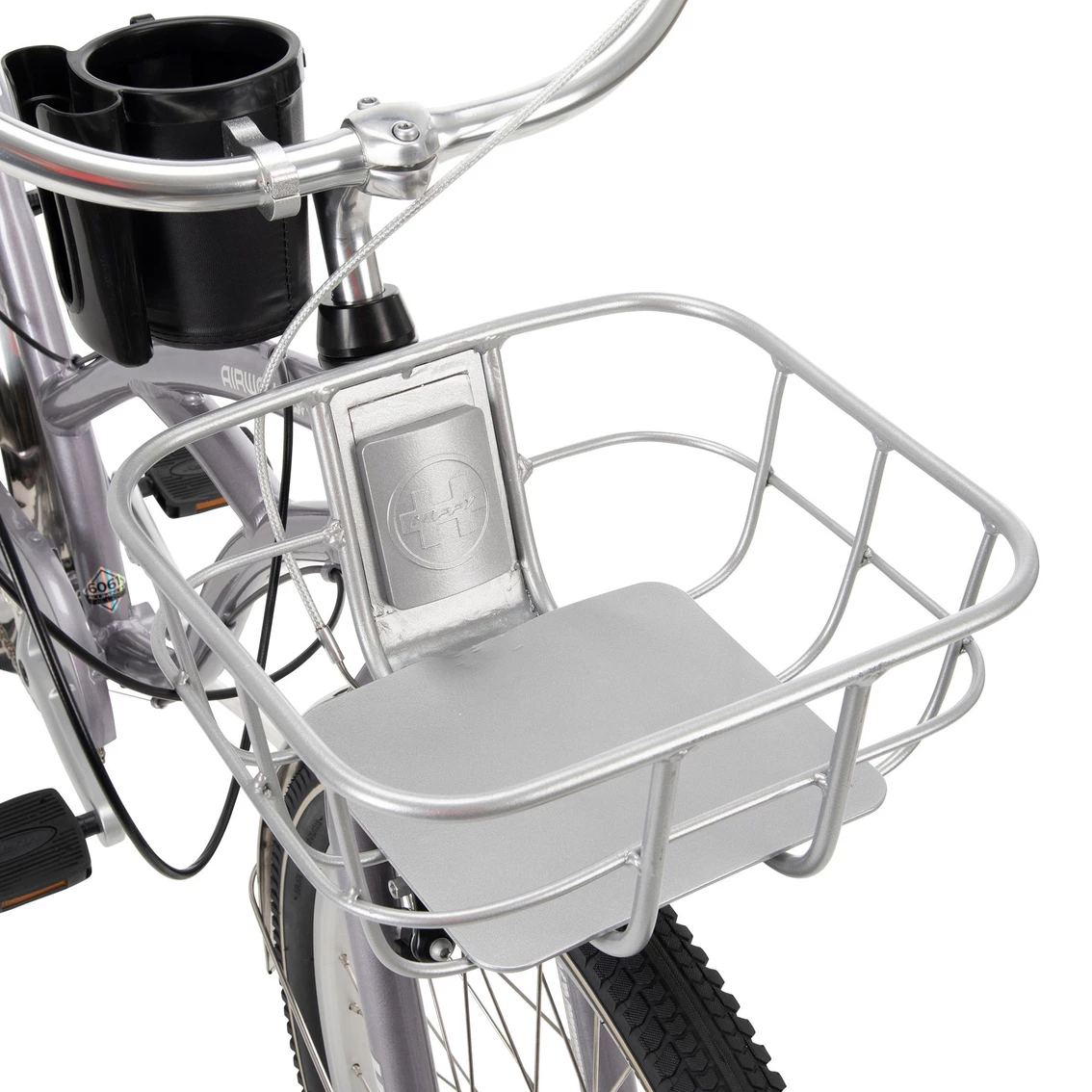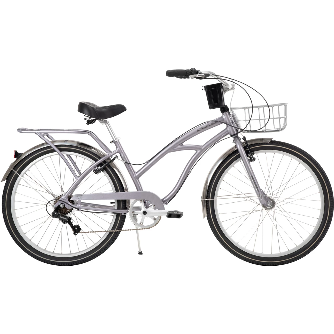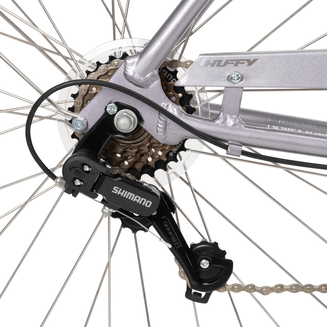 The Women’s 6-speed Airway Cruiser from Huffy lets you take cruising to the next level. The combination of easy-to-use twist shift gears, and Huffyโs lightweight Perfect Fit aluminum frame, makes it easier to go for longer rides, so why not go a little bit farther on your next coffee trip?