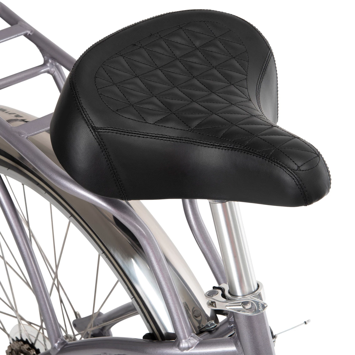 – Huffy Cruiser comfort package combines padded spring saddle accented with embroidery, plus ultra-comfortable dual density grips and pedals to ensure every ride is comfortable — and fun.
