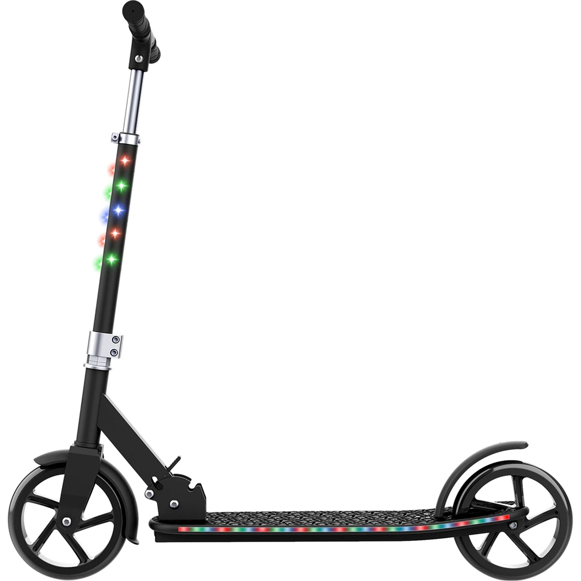 Our favorite scooter is growing up. With the Jetson Jupiter Jumbo 2-Wheel Scooter, we’ve taken all that makes our famous Jetson Jupiter Scooter so enjoyable and made it bigger and better. This is the perfect choice of ride for preteens or young teens who have outgrown their kids scooters and are ready for something a little bolder. With over 100 LED lights on the handlebar, stem, wheels, and deck, this is one ride that really will light up the neighborhood with a personality as colorful as yours. In addition, the Jetson Jupiter Jumbo 2-Whell Scooter comes preprogrammed with seven light patterns so you can wow your friends. The Jetson Jupiter 2-Wheel Scooter’s easy folding mechanism and lightweight frame mean that it is a breeze to carry and store. The Jupiter Jumbo 2-Wheel Scooter’s larger wheel means increased stability and provides a ride that is ready and waiting to take you on a whole new series of adventures.