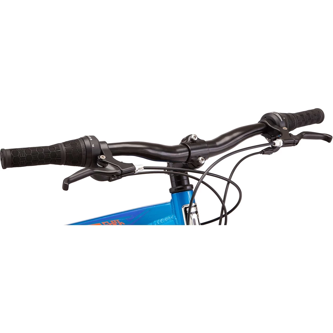Explore rad new trails with the Flat Rock mountain bike by Mongoose. The Flat Rock comes equipped with a lightweight aluminum hardtail frame and Element suspension fork that are ready to tear down the trail. 21-speed twist shifters and rear derailleur provide effortless gear changes, while alloy v-brakes deliver reliable stopping power. Plus, double wall alloy rims offer lightweight durability. Get out there and explore with the Mongoose Flat Rock. 24-inch wheels fits riders 56 to 66 inches tall.