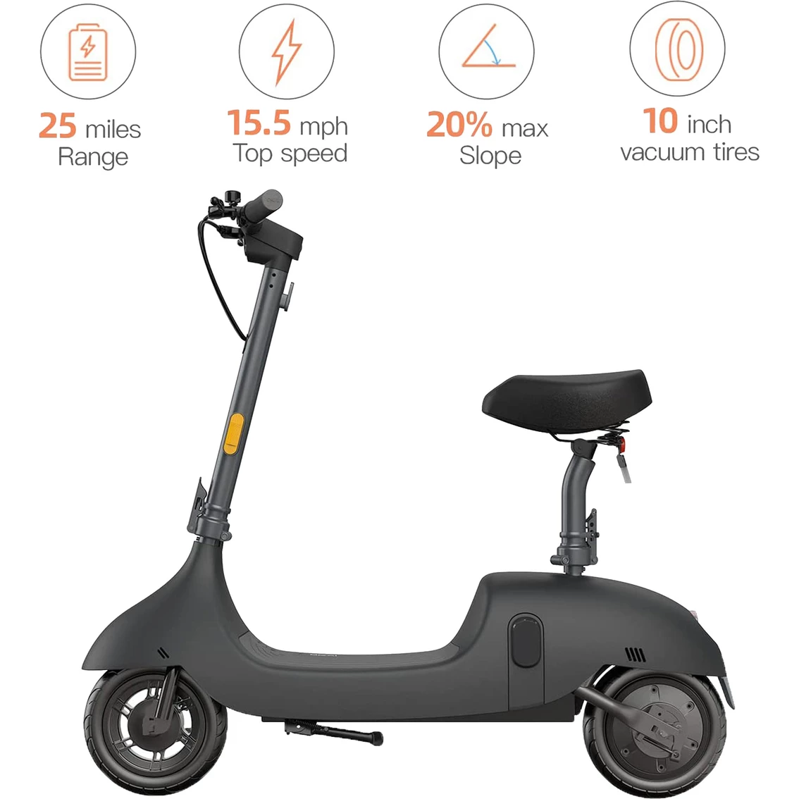 The first of its kind in the electric scooter market. Rediscover the fun and freedom of electric scooters with a whole new experience. Every effort has been made to make short and long rides enjoyable with smooth motion and luxurious comfort. 10 inch tubeless pneumatic tires absorbs shock where the rubber meets the road to provide an additional layer of comfort and peace of mind with the reduced likelihood of flat tires.