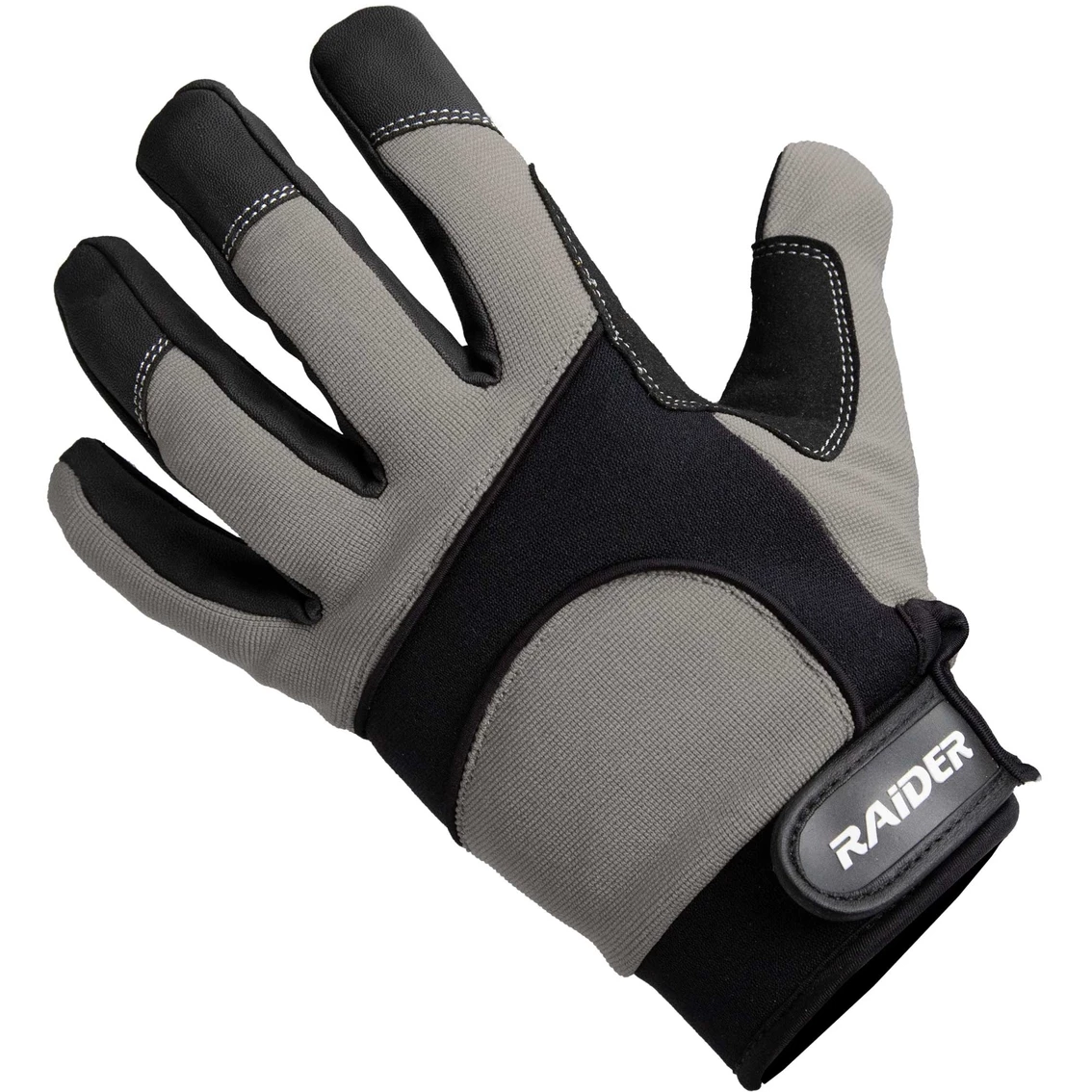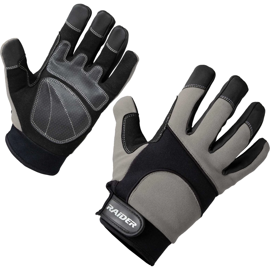 Enjoy these lightweight, rugged MX Gloves from Raider. They are made with PU-reinforced synthetic leather palms. Full spandex back for all-day wearing and riding comfort. Complete with neoprene cuffs with fully-adjustable Raider logo wrist tabs. Style: BCS-947-15.