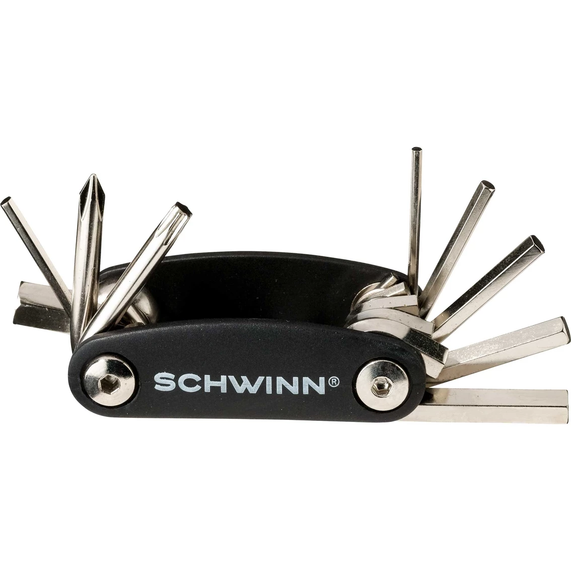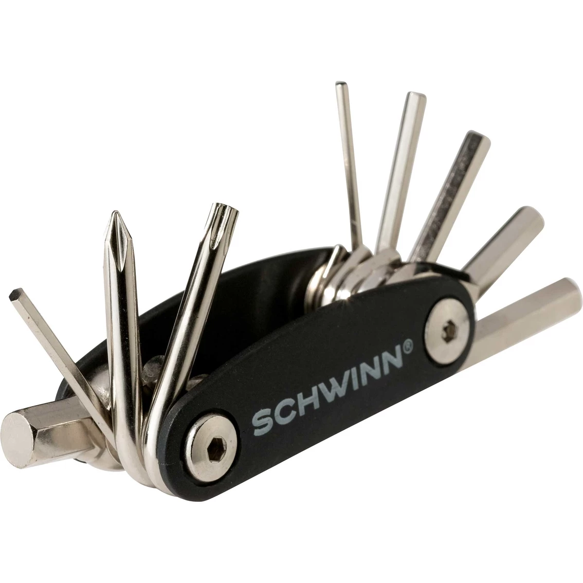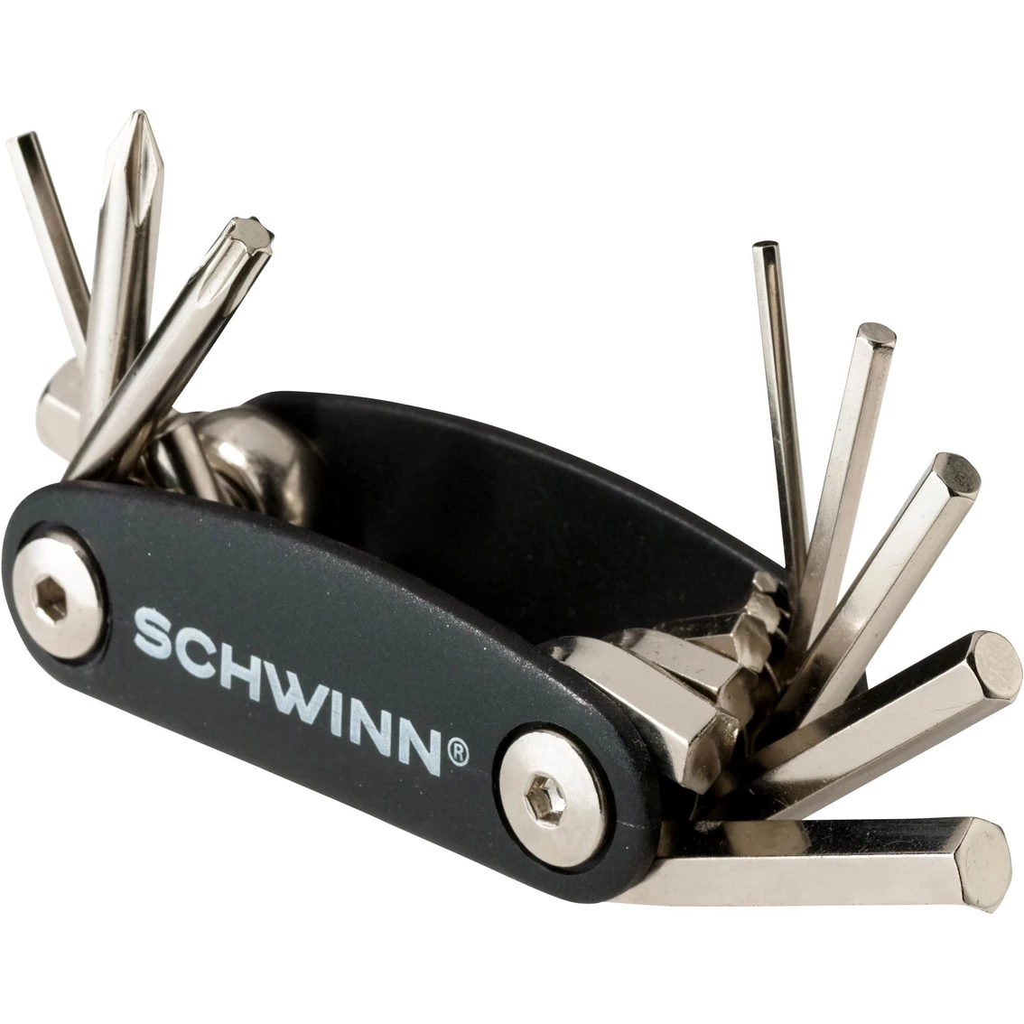 Get the job done with the Schwinn 9-Function Multi-Tool. Everything you need is built into this single, versatile tool; including a variety of wrenches and screwdrivers. The tool you need is always right at your fingertips with the Schwinn 9-Function Multi-Tool. Features convenient, compact design. Hex Wrenches 2 mm, 2 5 mm, 3 mm, 4 mm, 5 mm, 6 mm, 8 mm. Phillips screwdriver. T25 Torx wrench; Weighs 3 35 oz (100 g).