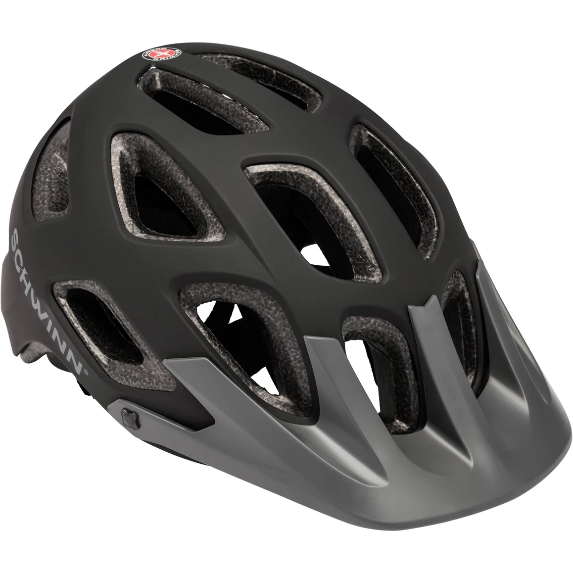 The Schwinn Excursion Adult Helmet is a mountain style helmet providing maximum durability for even the toughest trail rides; Adjustable dial fit offers 360 degree adjustability for the perfect custom fit; Full shell coverage adds durability and superior protection in the rear; 17 deliberately placed vents keep heads cool on hot summer rides; Weather visor shades eyes from sun and rain, and is easily removable when needed. Model: SW78724.