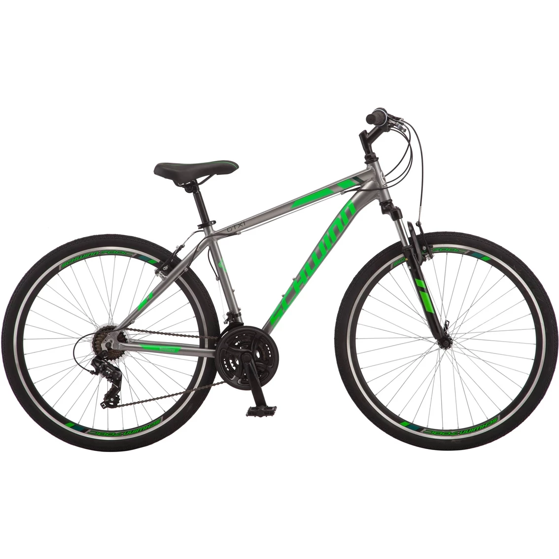 Choosing the right bike can be tough. Road bikes are great for speed and fitness, but they can’t handle even the smallest patch of gravel. Cruiser bikes are fun and casual, but they aren’t designed for long and strenuous rides. Mountain bikes can handle gnarly trails but aren’t fast enough to take to work. Sounds like you need a hybrid, the perfect combination of road bike speed, cruiser comfort and mountain bike versatility. The 700c Schwinn GTX 1 has all of that and more, a true multi-sport hybrid that can handle all of your biking needs. Ride it around the neighborhood with the kids, take it to the store or commute to work with it in the mornings – the GTX 1 is up for anything. It features Microshift 21-speed trigger shifters and a Shimano rear derailleur for easy, precise gear changes, a Schwinn suspension fork to smooth out the ride, and strong and light alloy rims for added stability. The front and rear alloy V-brakes provide sure stops. Schwinn multi-use tires are perfect for on-road riding or off-road adventures. On top of that, like all Schwinn bikes, the GTX 1 comes with a limited lifetime warranty for as long as you own the bike. So what are you waiting for? Enjoy the freedom of riding a Schwinn!