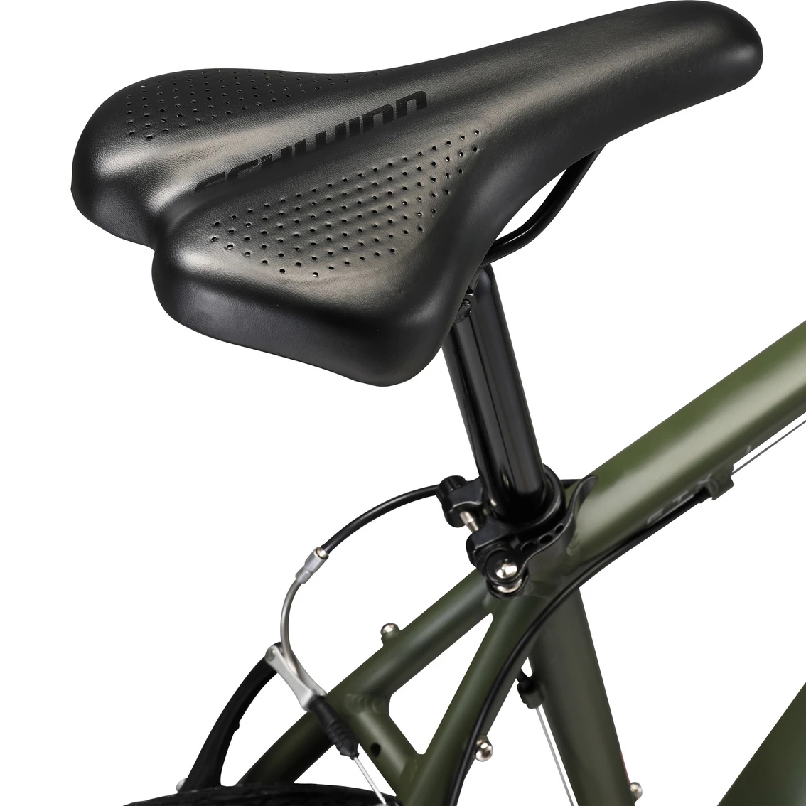 Can’t choose between all the different types of bikes out there you need a hybrid, the perfect combination of road bike speed, cruiser comfort and mountain bike versatility. The men’s 700c Schwinn GTX 1 has all that and more, a true multi-sport hybrid that can handle all of your biking needs. Ride it around the neighborhood with the kids, take it to the store or commute to work with it in the mornings – the GTX 1 is up for anything. It features microshift 21-speed twist Shifters and a Shimano rear derailleur for easy, precise gear changes, a Schwinn suspension fork to smooth out the ride, and strong and light alloy rims for added stability. The front and rear alloy v-brakes provide secure stopping power and the Schwinn multi-use tires are perfect for on-road riding or off-road adventures. On top of that, like all Schwinn bikes, the GTX 1 comes with a limited lifetime warranty for as long as you own the bike. So what are you waiting for, enjoy the ride on a Schwinn.