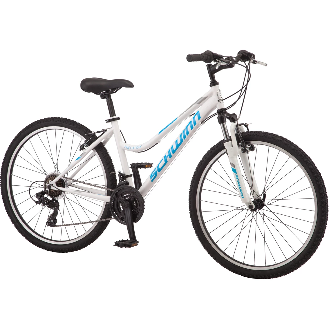 The Schwinn High Timber 26 in. Front Suspension Mountain Bike is ideal for riders who want to take on a variety of terrain. The steel frame offers durability for those tough courses. 21-speed Shimano twist shifters with Shimano rear derailleur offer smooth navigation of almost any surface or incline. The front and rear alloy linear pull brakes provide precision stopping power. The wheels feature alloy rims for lightweight strength and all terrain tires. Plus, the High Timber’s quick release seat post lets you make easy height adjustments, so you can find your perfect fit. And like all Schwinn bikes, the High Timber comes with a limited lifetime warranty for as long as you own the bike. From pavement to trails, get out and ride with the High Timber. Enjoy the freedom of riding a Schwinn. Style: S4009E.