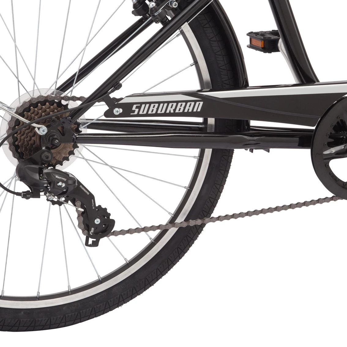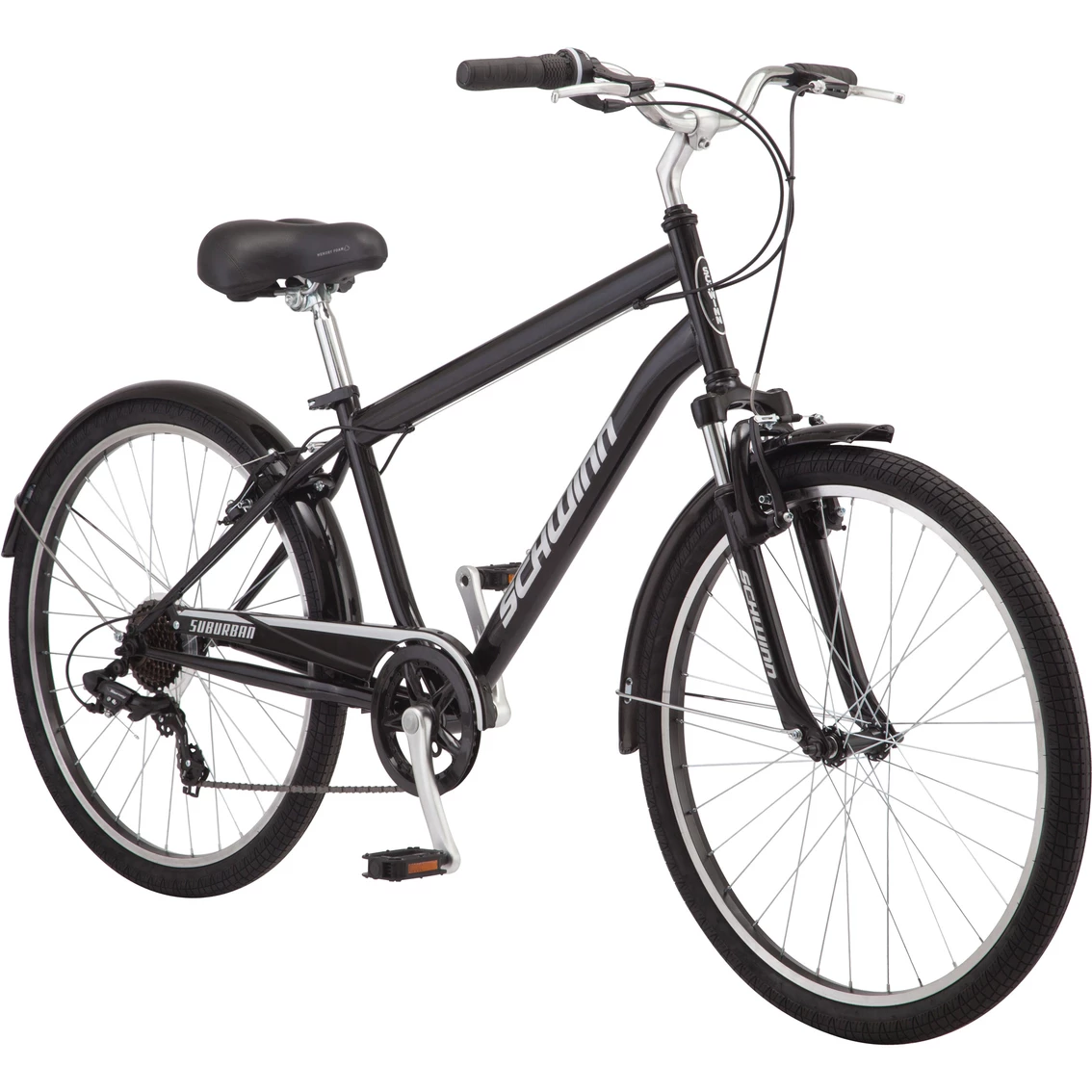 Great for your local bike path or cruising around town, the 26 in. Schwinn Suburban is the perfect comfort bike for casual riders. Your hands will enjoy the comfort of the ergonomic handlebar grips, while your rear end is certain to appreciate the Schwinn Quality comfort seat. More versatile than your typical cruiser, 7-speed shifters with a reliable Shimano drivetrain will have you zooming through your local paved trails. Light alloy rims and comfortable swept-back handlebars put the finishing touches on this sleek comfort bike that’s sure to be a hit around the neighborhood. Like all Schwinn bikes, the Suburban comes with a limited lifetime warranty for as long as you own the bike. Enjoy the freedom of riding a Schwinn.