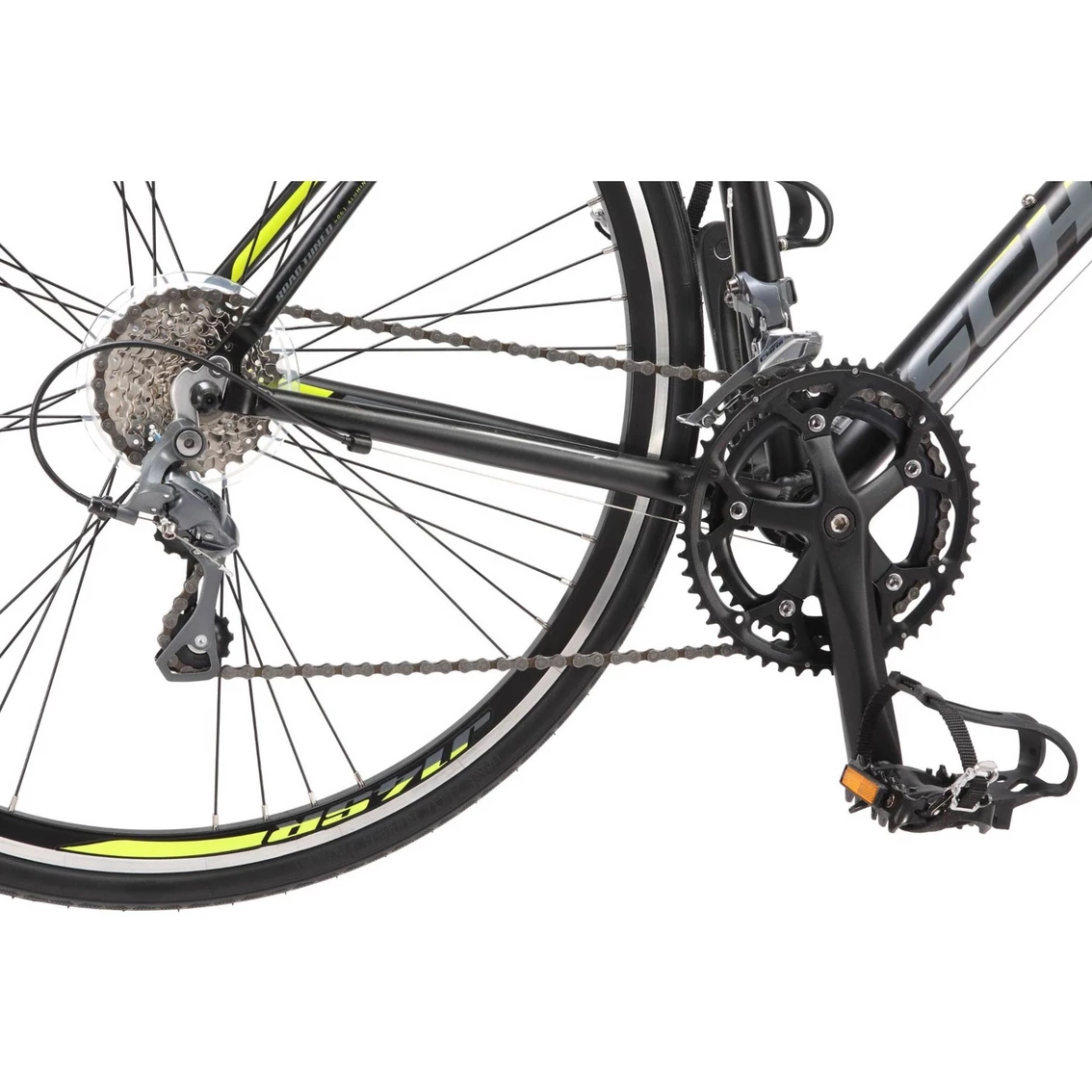 Turn long, arduous rides into your favorite weekend jaunt with the 700c Men’s Phocus 1600 by Schwinn. The ride is always smooth and agile thanks to a light Schwinn aluminum road frame, carbon fiber road fork and reliable Promax alloy caliper brakes. Sick of your hilly morning commute? Premium 16-speed Microshift shifters make gear changes smooth and quick — perfect for those pesky hills. Add in smooth rolling tires, light and strong high profile alloy rims and a durable 3-piece alloy crank, and this commuter companion easily becomes your favorite weekend warrior. Quick and agile, smooth and responsive, and it’s backed by a lifetime limited warranty for as long as you own the bike. Get Phocused and enjoy the ride on a Schwinn. Model: S5492B.