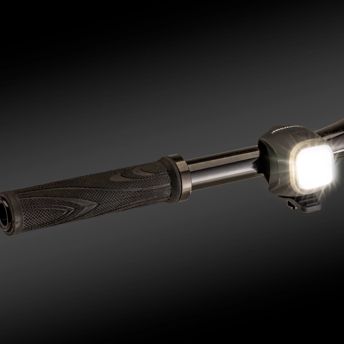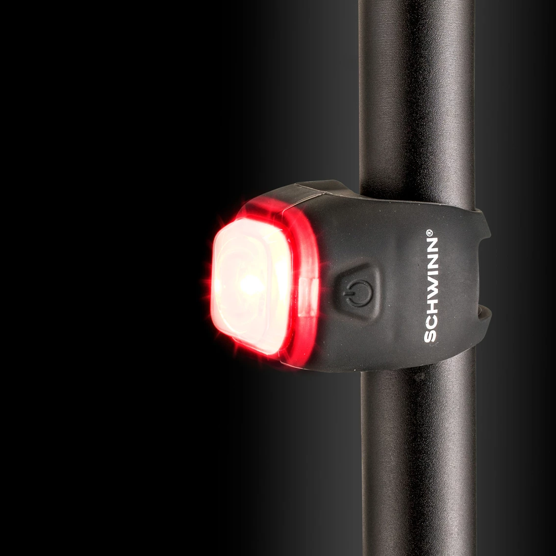 Make your ride safer and light up the way with the 30 Lumen Quick Wrap LED Light Set from Schwinn. This 2-light set comes with a 30 lumen front headlight and a 6 lumen rear taillight that will brighten up your path for smooth night riding while simultaneously making you more visible to traffic. You can choose between steady and flashing beam modes to cater your desired illumination to every riding situation, and the quick wrap design lets you easily attach the light to your handlebars without any pesky tools. When you get home, don’t worry about scouring the cabinets for those expensive batteries you can never seem to find. This bike light set is conveniently Micro USB rechargeable! You can even recharge it when you stop for a latte at the coffee shop in the middle of your ride. Convenient and safe, the Schwinn 30 Lumen Quick Wrap LED Light Set is the perfect accessory to brighten up your ride. The front headlight beam distance is 66 ft and the rear light beam distance is 28 ft with a 6 hour run time on the steady light mode or a 17 hour run time on the flashing light mode for long-lasting use. Enjoy the freedom of riding with Schwinn. Model: SW79068-4.