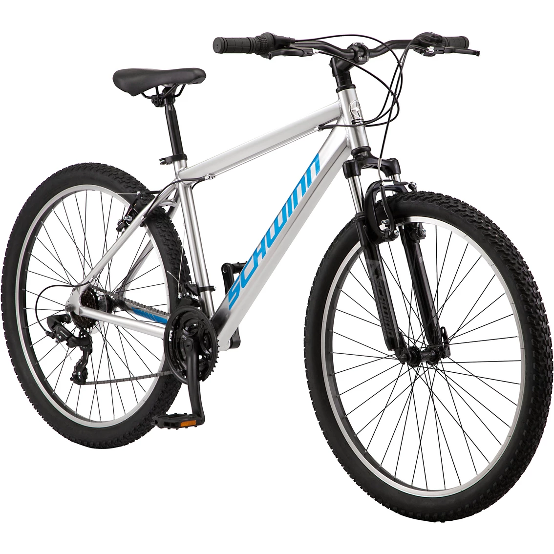 Explore new bike paths and light trails with the Timber Trail AL mountain bike by Schwinn. This bike comes with an aluminum hardtail frame and suspension fork for controlled riding. The Shimano 21-speed twist shifters and rear derailleur provide effortless gear changes, while alloy linear pull brakes deliver reliable stopping power. Plus, the quick release seat post makes it easy to fine tune the fit. Like all Schwinn bikes, the Timber Trail AL comes with a limited lifetime warranty for as long as you own the bike. The trails are waiting; go and explore with Timber Trail AL. Enjoy the freedom of riding a Schwinn. 27.5-inch wheels fit riders 64 to 74 inches tall.