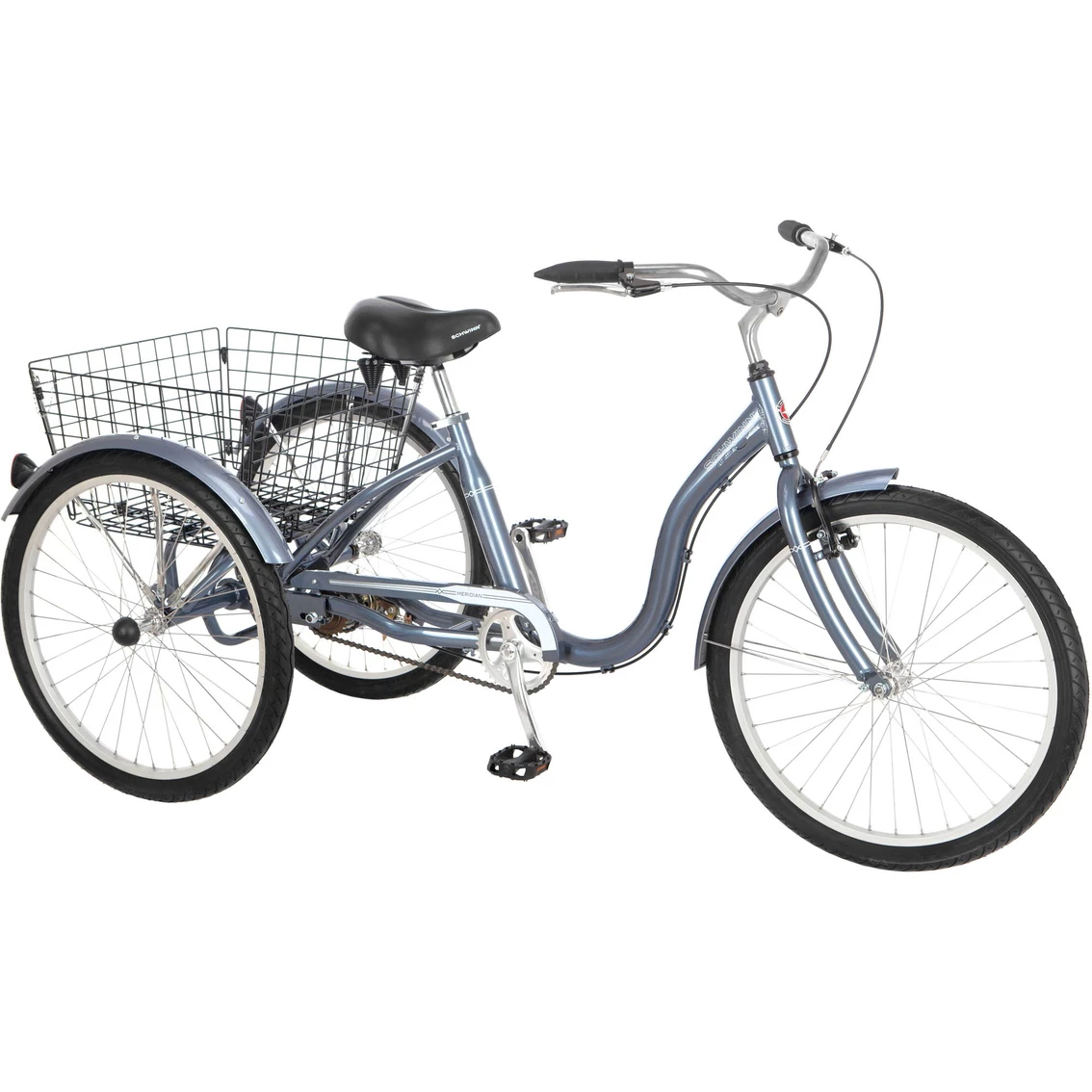 This 3-wheeled adult trike from Schwinn provides a stable riding position with a large cargo capacity. The cruiser styling has full wrap fenders and swept back handlebars for comfort.