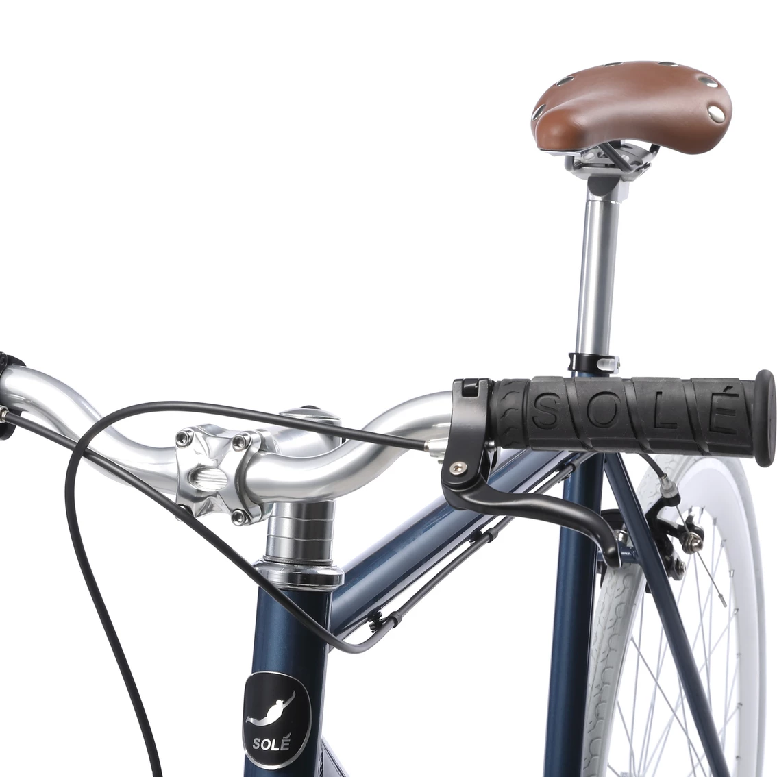 Sole The Whaler II features both front and rear hand brake and bottle cage eyelets. One gear, minimal and lightweight only 26lbs and 45mm deep dish double-walled rims with 700 x 28c tires and presta valve stems. Flip-flop hub for cruising Single Speed or turning it up on Fixed Gear. Model: Sole 060-52-V2.